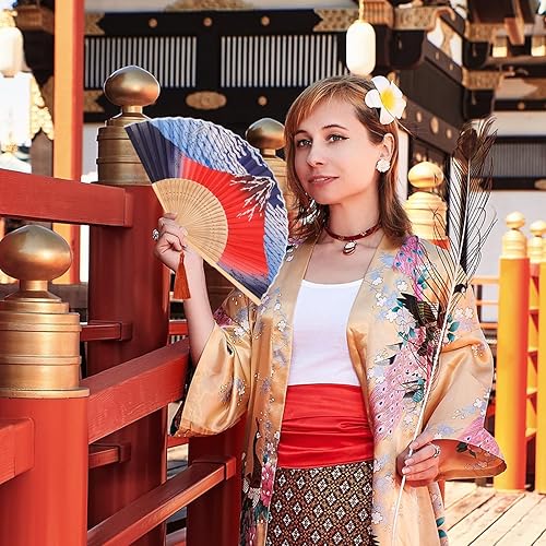 AWCIGG Eventail Japonais Mont Fuji Éventail Décoration Japonaise Eventails Soie et Bambou avec Frange Mini Evantail etui de Protection En Tissu Inclus pour Femme Été Enfant Fille Homme