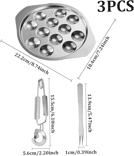 Plat Escargot en acier inoxydable Plaque Escargot 12 Plaques de grille avec pince et poignée fourche