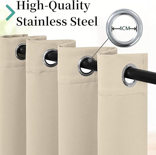 Lot de 2 Rideaux Occultants 70 x 120 cm 100% Bloquer Lumière, Anti-UV 100% Rideau Occultant 2 Pièces Lot de 2 Rideaux pour Salon et Chambre, Beige