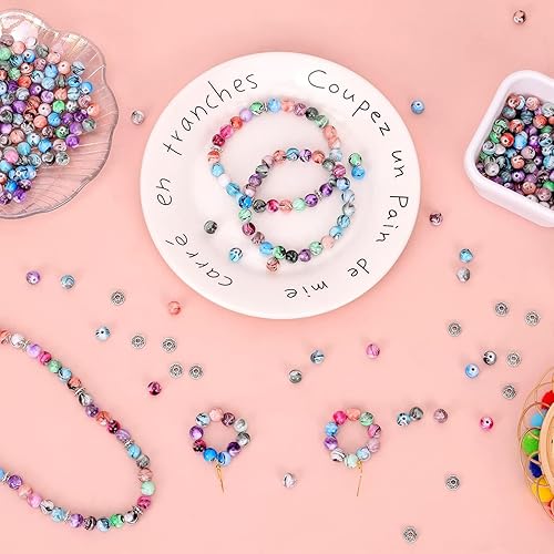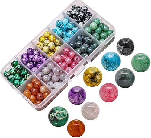 Perles Pierre Naturelles Pierre Perles DIY Perle Kit 10 Couleurs,Lithothérapie pour la Fabrication Bijoux Bricolage Artisanat Bracelet,Boucle d'oreille, Collier(200 pièces 8 mm)
