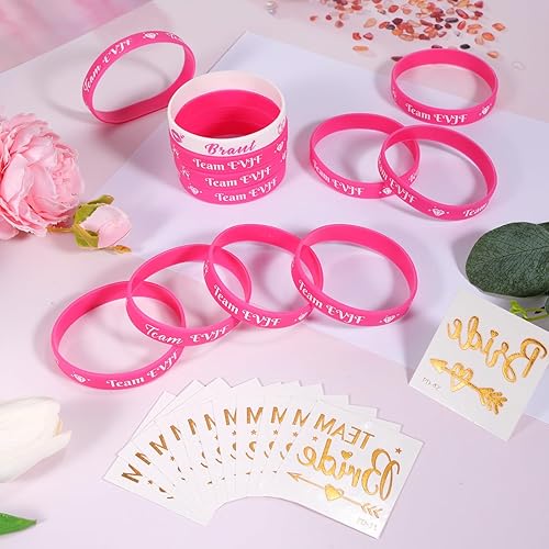 HOWAF 24 Pièces Kit EVJF Accessoire, 12 Elastiques Bracelet EVJF Future Mariée Team Bride Bracelet Silicone + 12 Tatouage Mariage Autocollant Mariage pour Enterrement de Vie de Jeune Fille,Cadeau EVJF