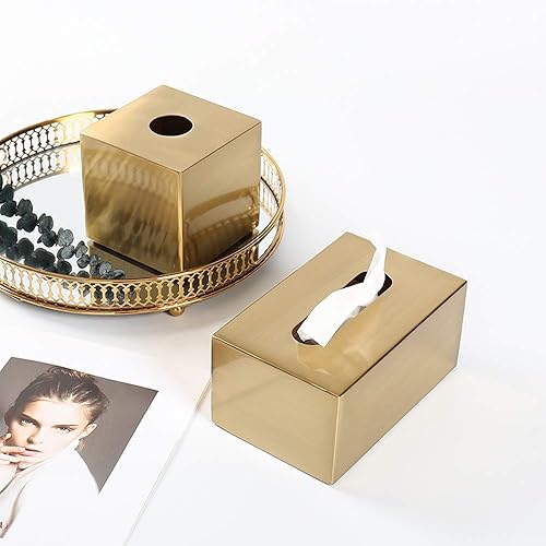 UCYG Support de boîte à mouchoirs carré en Acier Inoxydable en métal en Forme de boîte à mouchoirs for Salle de Bains ou Bureau, Or (Size : Square)