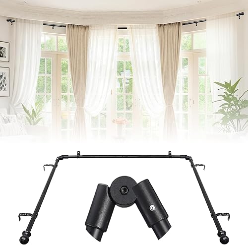 Tringle à Rideaux Baie Vitrée, 76-345cm Tringle à Rideau Réglable en Forme de L en Acier Inoxydable, Tringles à Rideaux de Baie de 25mm Diamètre pour Chambre à Coucher, Salon/Noir Mat