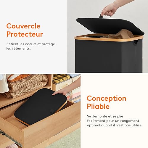 Lifewit Panier à linge pliable de 100 l avec couvercle, paniers à linge avec poignées en bambou et sac à linge amovible, grand panier à linge pliable pour chambre à coucher, salle de bain, dortoir,