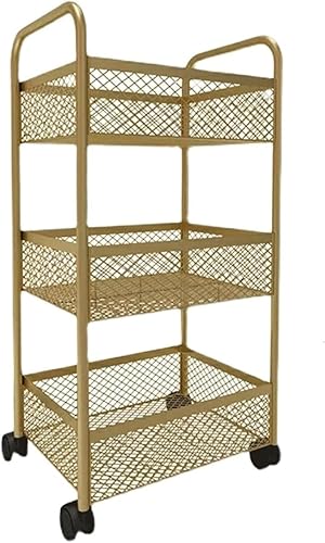 JvFbjLF Chariot de Salon Chariot Roulant de Salon à 3 Niveaux Support en métal Chariot de Chariot cuit Chariot de Salon de Garde en Maille avec Chariot de Chariot de Salon de Roue(Gold)