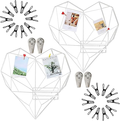 Symeton Lot de 2 Grilles Murales Blanches (40 x 80 cm) - Décoration Murale Multifonction en Fer pour Photos, Cartes Postales, Notes