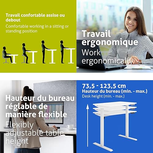ESMART ETX-121GM 140x70cm Décor érable Bureau Ergonomique Assis-Debout Réglable électriquement en Hauteur 73,5-123,5 cm 3 x Mémoire Rappel d'activité Démarrage/arrêt en Douceur Montage Rapide