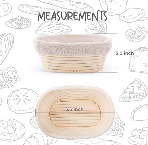 DOYOLLA Lot de 5 mini paniers ovales de 16,5 cm avec doublures pour pâtisserie au levain