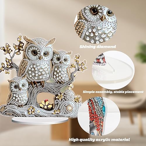 SHEGZHUC Diamond Painting Ornements Diamant Peinture Ornements Diamant Peinture Broderie Point de Croix Art Table Décoration Salon Chambre Cadeau (Hibou, Famille de hiboux, Chouette Neige, Animaux