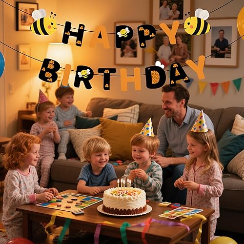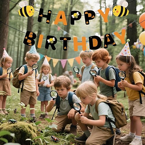 Bannière « Happy Birthday » sur le thème de l'abeille pour femmes et filles – Décorations d'anniversaire noires et oranges avec joli motif d'abeille, panneau de fanions en papier réutilisable pour