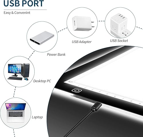 GLIME Tablette Lumineuse A3, Ultramince Stepless Dimming Table Lumineuse Dessin LED pour Diamond Painting, avec Ligne d'échelle Précise Câble USB Rechargeable, pour Animation Esquisse Gaufrage Pochoir