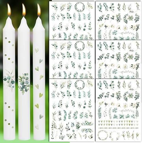 6 Feuilles Autocollants pour Bougies Tatouage de Bougie Transfert D'Eau Cadeau DIY Décoration de Bougie