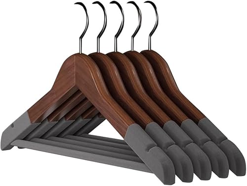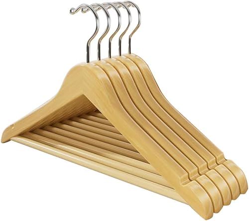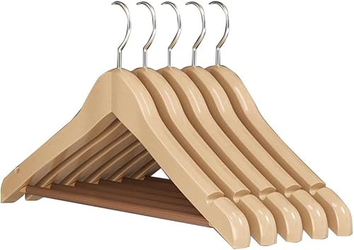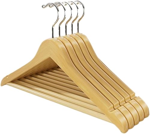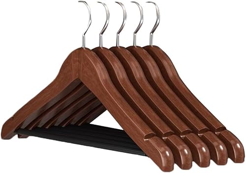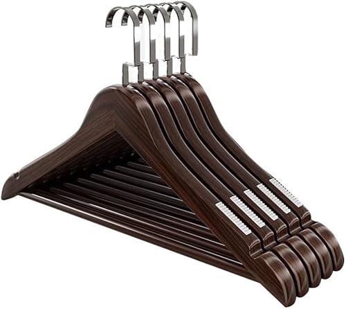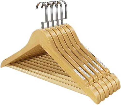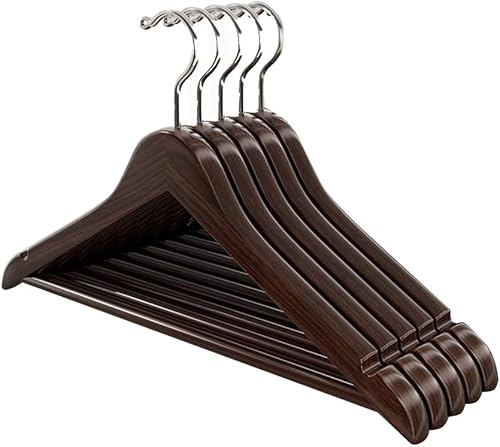 Cintres de Costumes, Lot de 5, Cintres en Bois Massif avec Encoches et Barre, Antidérapants pour Chemises, Manteaux, Vestes, Pantalons B3