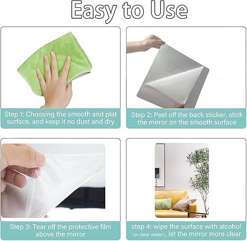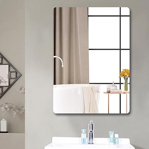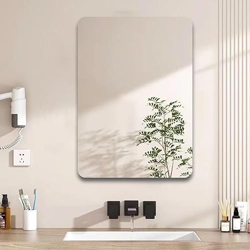 LIVELYPET Feuille de miroir acrylique autocollante flexible sans verre miroir carrelage rectangulaire collant sécurité miroir mural sans cadre autocollant pour salle de bain vanité maison décoration