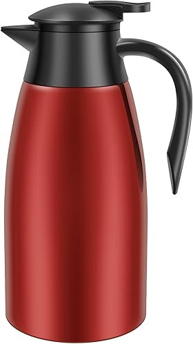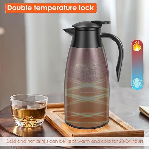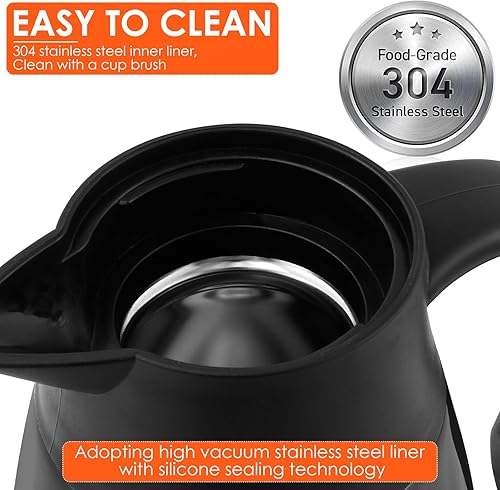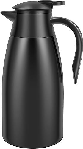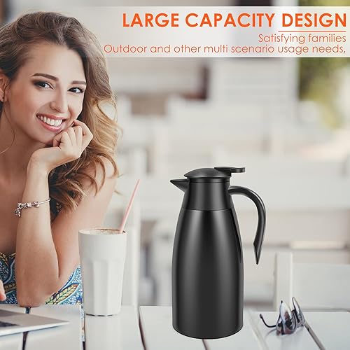 Pichet isotherme en acier inoxydable 304 de 2 l, cafetière thermique, de 20 à 24 heures, capacité, pour café, thé, eau, boisson, pour la maison, le bureau et le camping (noir)