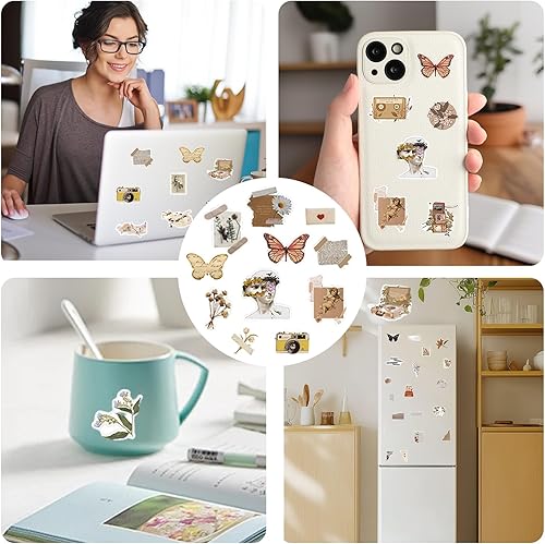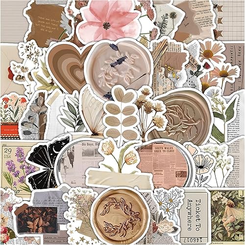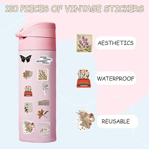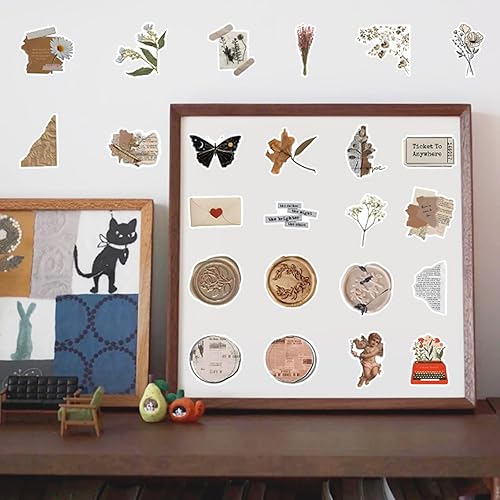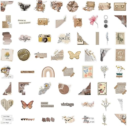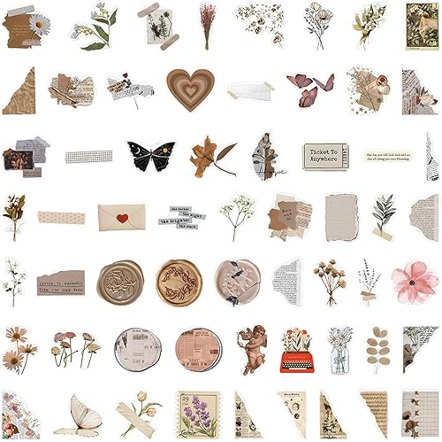 AYNKH Lot de 120 Autocollants Vintage pour Scrapbooking, Stickers Autocollant Rétro Aesthetic pour Journal Scrapbooking DIY Carnet Album Photo, Autocollants Esthétiques Décoratifs