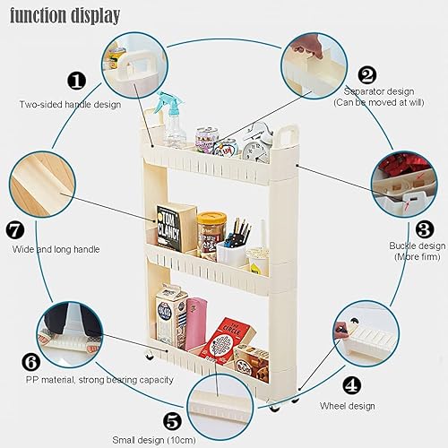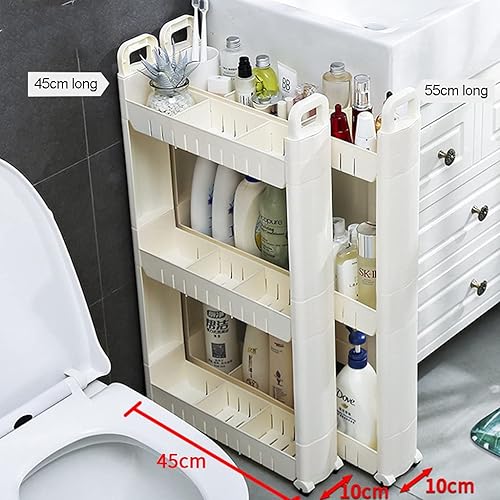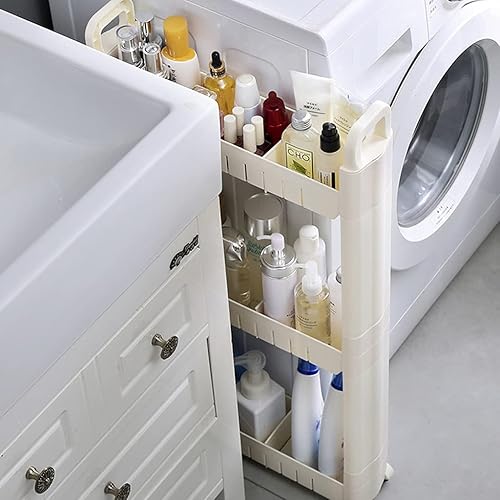 Chariot De Rangement 3-Tier, Chariot De Rangement Mince Mobile, Chariot De Stockage, Étagère sur roulettes, pour Cuisine Étroites, Salle De Bain, Buanderie, Bureau (Size : 3 Layers - Heighten)