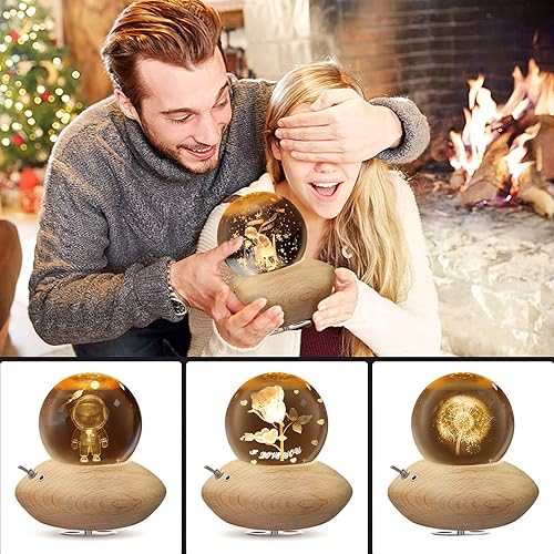 HILEYOLLA Boîte à Musique 3D Boule de Cristal, Boîte à Musique rotative à 360°avec Lampe de Projection à Lumière Chaude,Cadeau pour Noël,Thanksgiving, Anniversaire, Saint Valentin