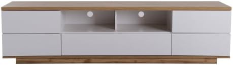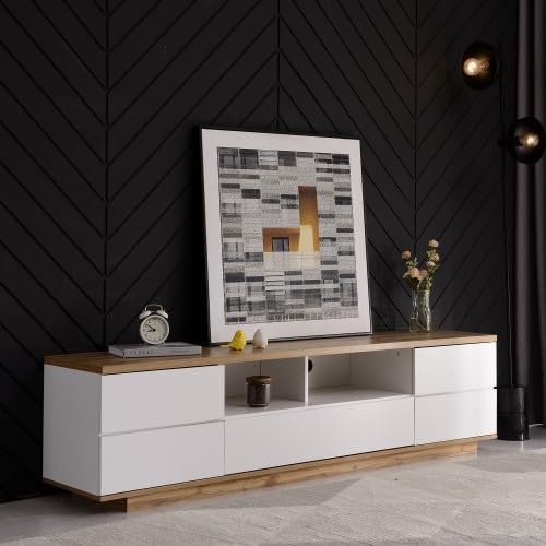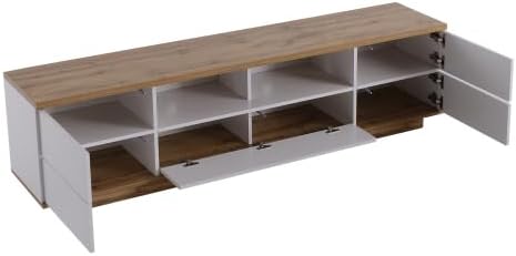 Meuble TV Moderne Blanc en Bois - 5 Portes 8 Compartiments, Armoire de Télévision Buffet Salon Bas - 180x38x46cm
