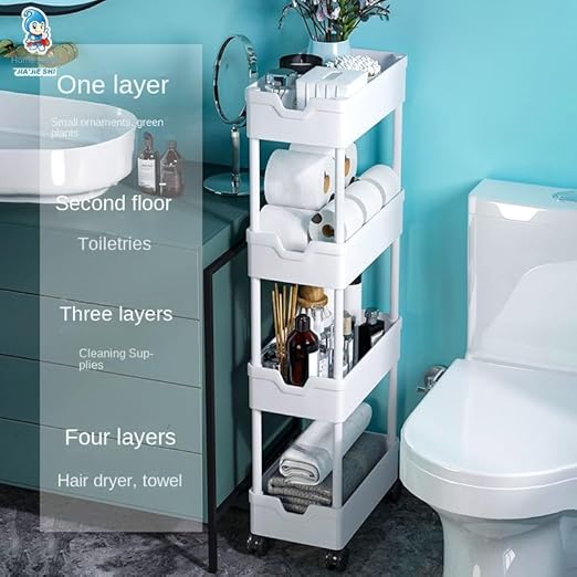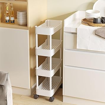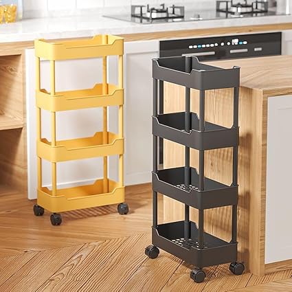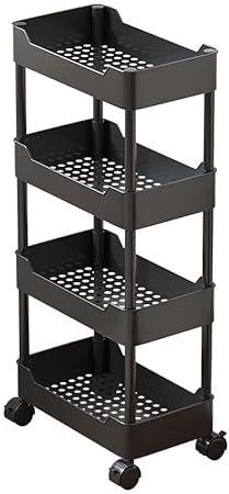 Chariot de rangement mobile à 4 niveaux avec roulettes, unité fine et étanche avec étagère de rangement pour cuisine, chambre, buanderie, bureau, salle de bain (noir, 3 couches, largeur 25 cm)