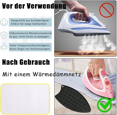 Repose Fer a Repasser Silicone, Silicone Tapis de Repos de Repassage, Protection de sécurité Thermique, Tapis à Repasser Résistant à la Chaleur, Filet De Repassage, Noir