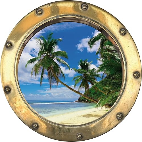 Stickers hublot trompe l'oeil Plage mer palmier - H306 (30x30 cm)