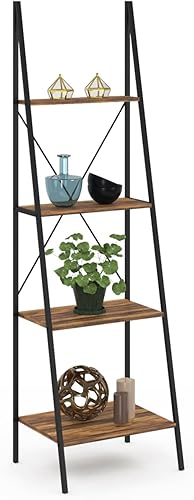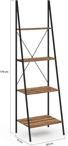 IDMarket - Etagère échelle 4 Niveaux Hawkins Bois foncé Design Industriel 170 cm