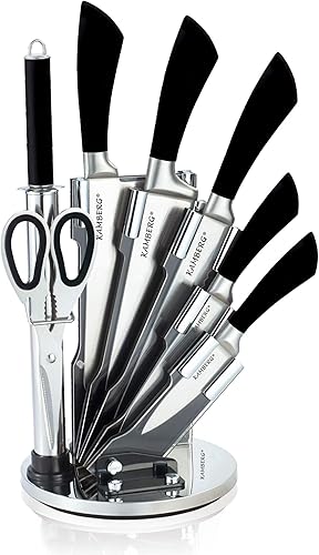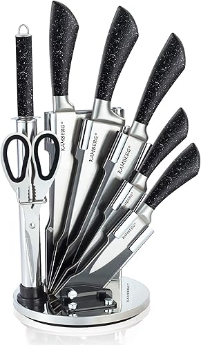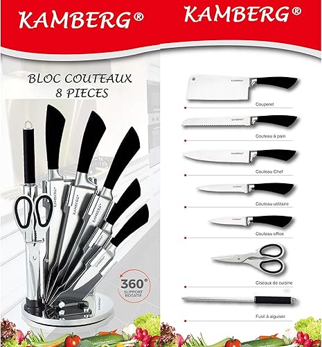 KAMBERG - Bloc couteaux de cuisine 8 pcs en Acier Inoxydable - Support Acrylique - Couteaux de cuisine - Type Pierre - 0008133