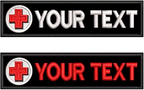2PCS Broderie Personnalisée Croix Rouge Assistance Médicale Logo Nom Patchs, Étiquette Tactique Amovible Pour Veste Gilet Sac À Dos Avec Crochet Et Boucle (2 Ligne)