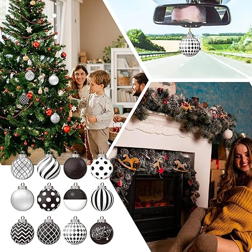 Lot de 12 boules de Noël noires - Boules de Noël amusantes - Décoration de sapin de Noël incassable - Décoration de sapin de Noël d'automne pour le festival