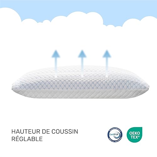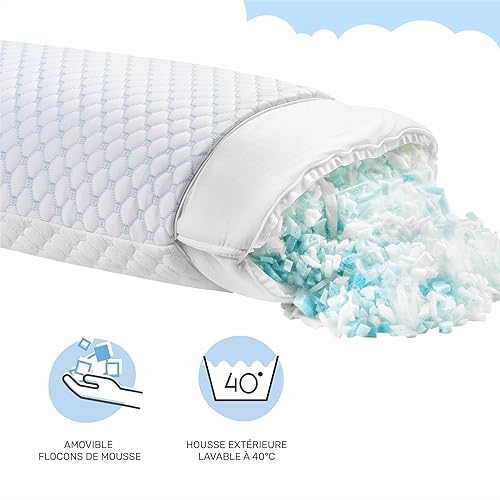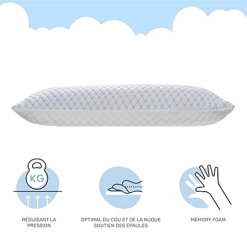 Dailydream FlexiCloud Oreiller cervical en mousse à mémoire de forme SENSICE - Rembourrage réglable - 80 x 40 cm - Blanc