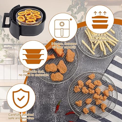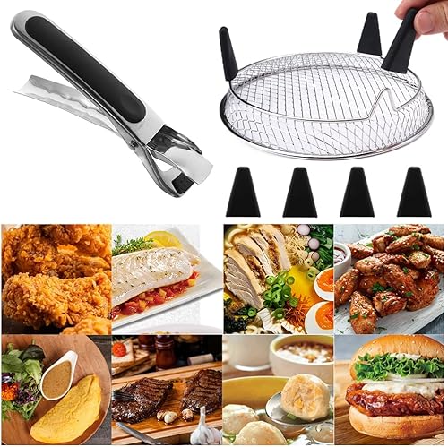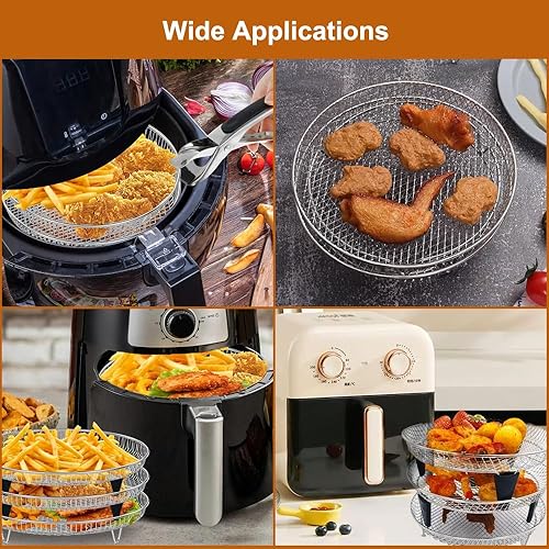 3 Pièces Support De Friteuse À Air, Ronde Grille Vapeur pour Friteuse à Air en Acier Inoxydable Avec 4 Pieds en Silicone, 1 Clip Anti-brûlure, Pour la Cuisine et la Pâtisserie Déshydratées(20cm)