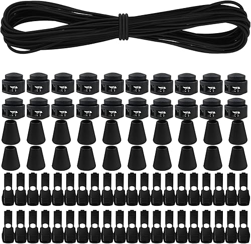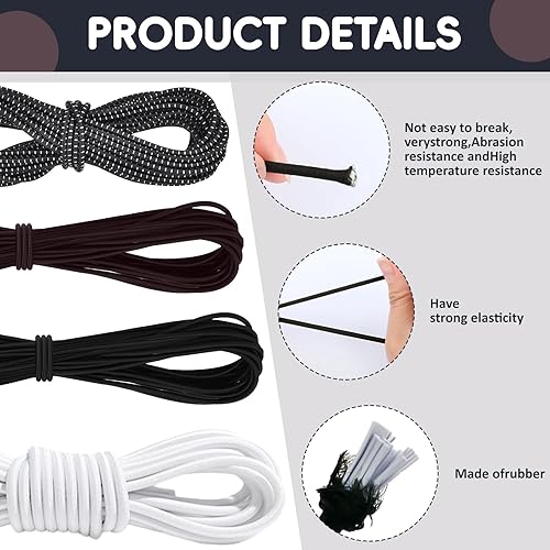 Cordon élastique en caoutchouc 10 m x 3 mm - Cordon rond élastique avec 40 pièces de fermeture éclair - Corde élastique pour cordon de serrage, sac à dos, vêtements