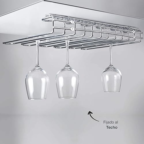 Lacor Support mural ou plafond, 45 x 31 cm, 20 tasses avec outils de montage en acier inoxydable, Métallique