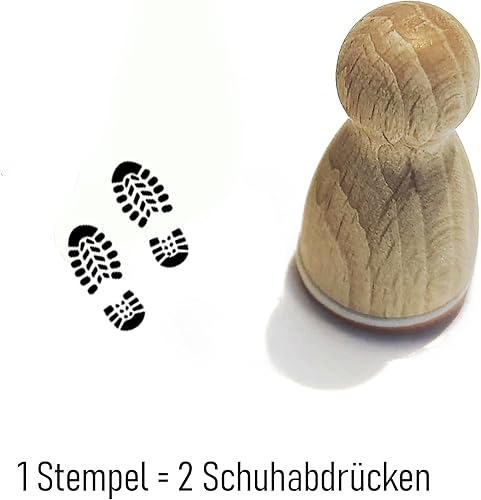 Stemplino® Mini tampon – Motif : empreinte de chaussure – 12 mm de diamètre – Tampon en bois lutin – Accessoire de lutin avec empreinte de chaussures