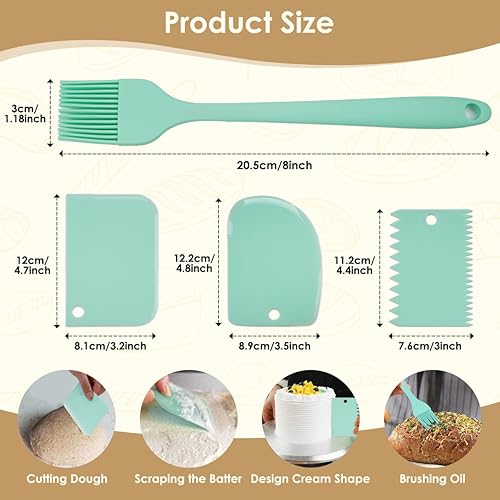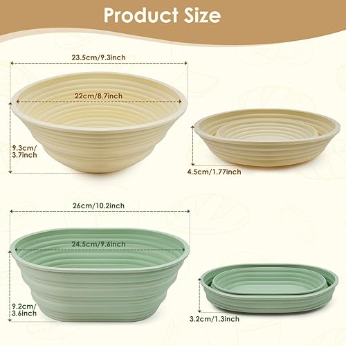 6PCS Panier de Fermentation pour Pain, Panier de Fermentation en Silicone avec Panier de Fermentation à Pain Ovale de 26cm, Panier à Pain Rond de 23,5cm, 3 Grattoirs et Brosses à Pâte