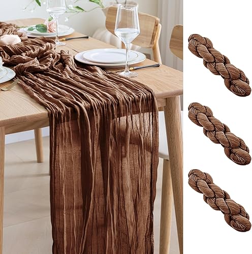 Asee'm Lot de 4 chemins de table en gaze - 300 x 90 cm - Marron - Style bohème transparent - Pour mariage, douche et fête
