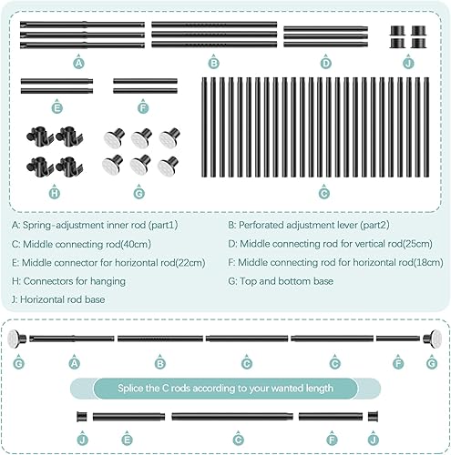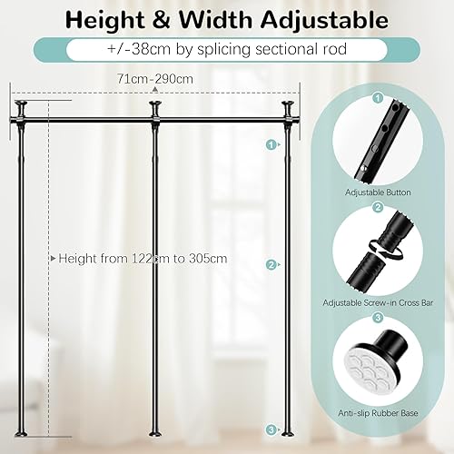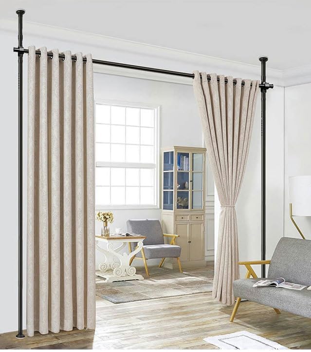 Tringle à Rideaux sans Percage, Separation de Piece Intérieur, Paravent Interieur Rideau Télescopique, Tringle à Rideaux Réglable pour Salon, Chambre à Coucher ou Bureau 122-304 cm (H), 71-289 cm (l)