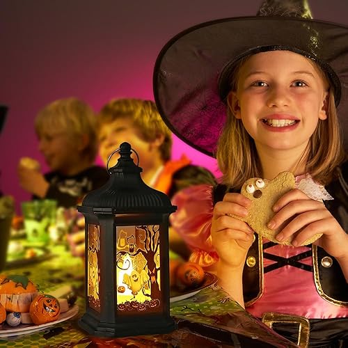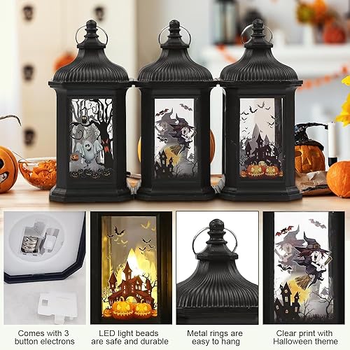 3 Pièces Lanterne Halloween LED, Decoration Halloween Exterieur et Interieur a Suspendre, Halloween Decoration Citrouille Lumineuse, Décoration Jardin Lumière Batterie Fantome Veilleuse Deco Halloween