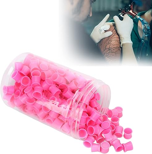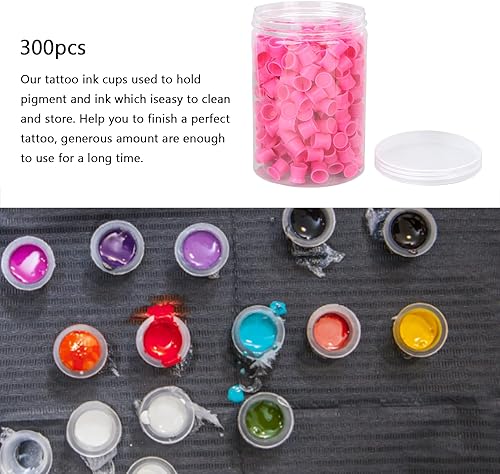 Tasse d'encre de Tatouage 300pcs, Tasse de Pigment de Tatouage en Silicone Jetable Tattoo Ink Cup Capuchons de Couleur Eye-Liner Sourcil Lèvre Tatouage des Yeux Tasse de Pigment