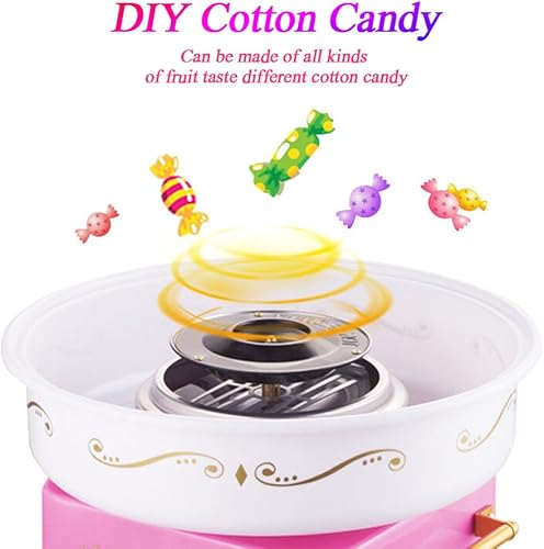 Machine Barbe à Papa, Cotton Candy avec 10 Bâtonnets et Cuillère, Machine Sucre Candy pour Maison et Fete Foraine Anniversaire Enfant (B-Rose)