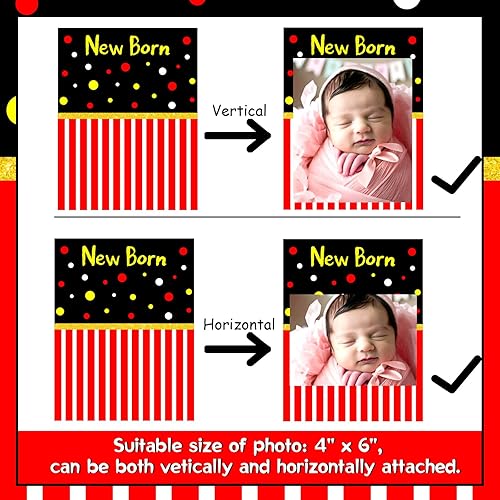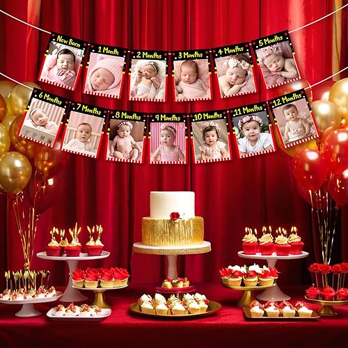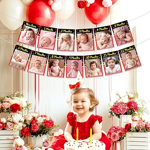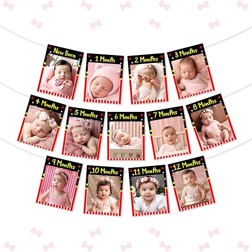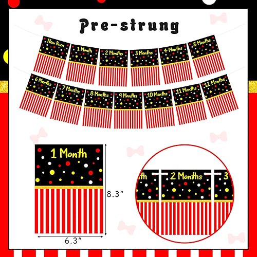 Kreatwow Cartoon Mouse 1st Birthday Party Decoration Red Black Cartoon Mouse 1st Birthday Photo Banner One Year Old Photo Banner Monthly Newborn To 12 Months Black Mouse Party Supplies for Boy Girl