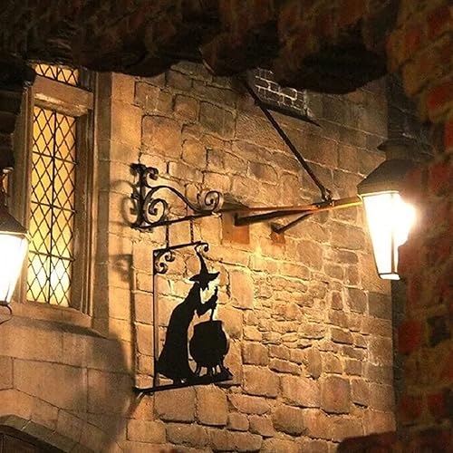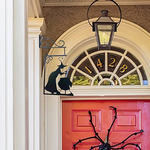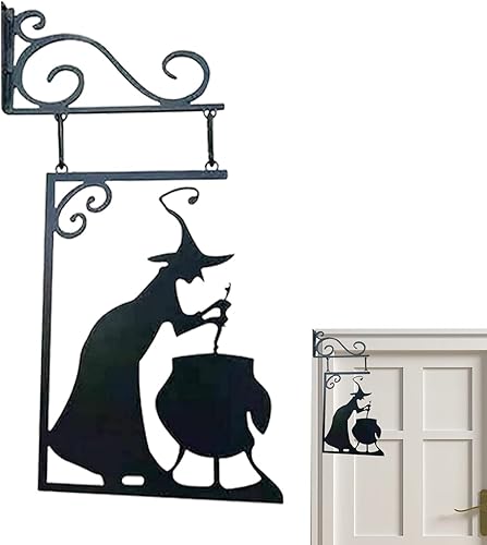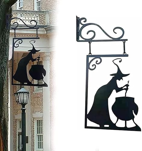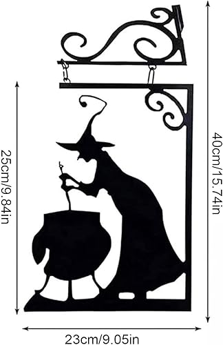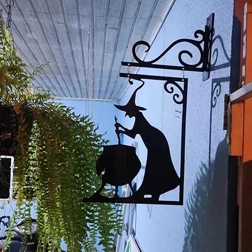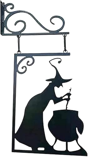 Moxeupon Décoration Murale De Silhouette De Chaudron De Sorcière d'halloween, Décorations De Cour avec Silhouette d'halloween, Panneau Mural Effrayant en Métal Suspendu