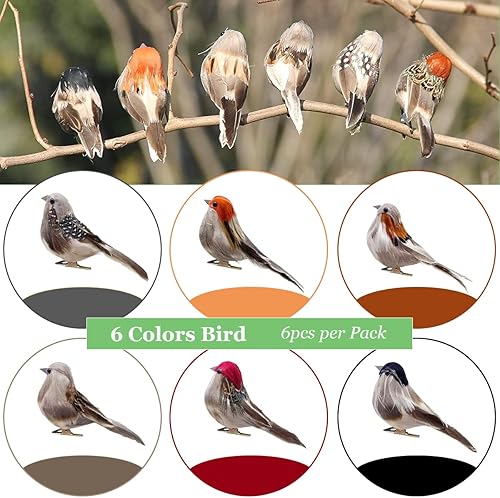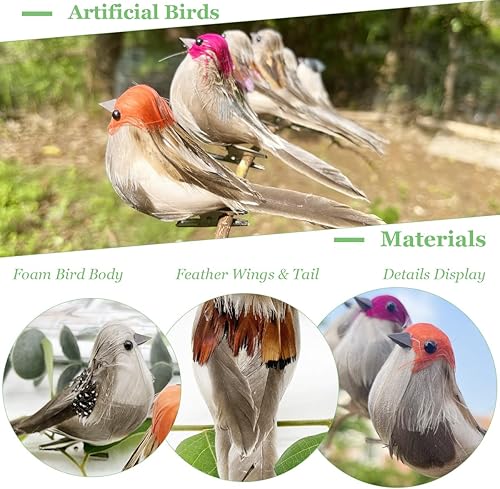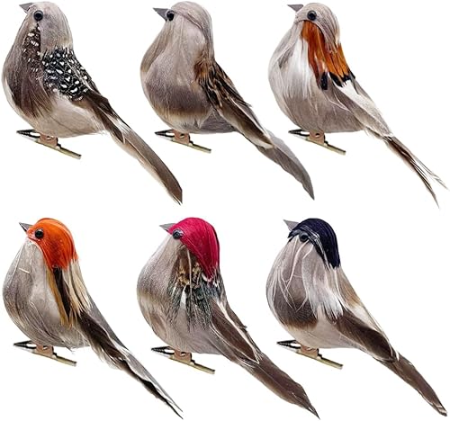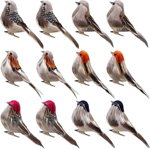 LWINGFLYER Lot de 12 Oiseaux Artificiels à Clipser en Forme de Moineau Réaliste en Mousse de 10,2 CM pour Travaux Manuels Décoration de Sapin de Noël Affichage Saisonnier