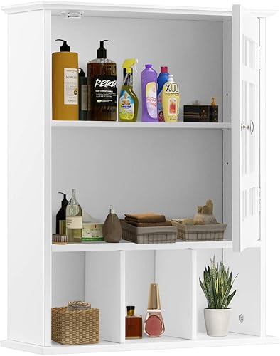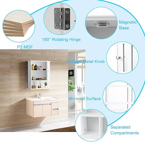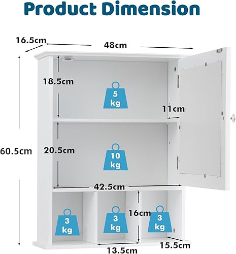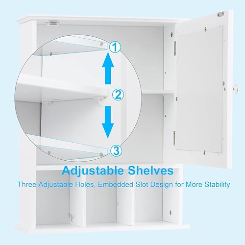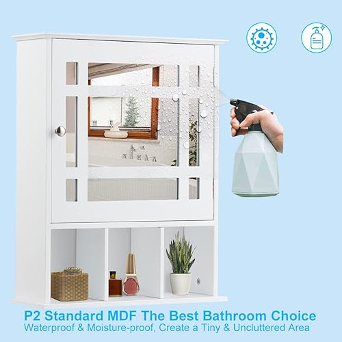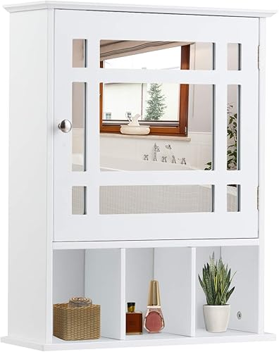 LIFEZEAL Armoire Murale de Salle de Bain avec Miroir, Placard de Rangement Toilettes avec Étagère Réglable, Armoire de Toilette à 3 Niveaux, 50 x 16 x 61 cm (Blanc)