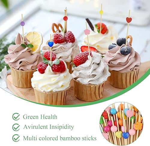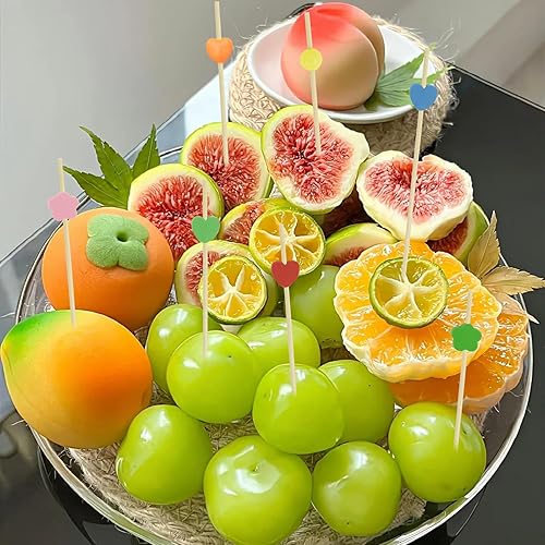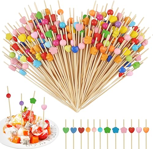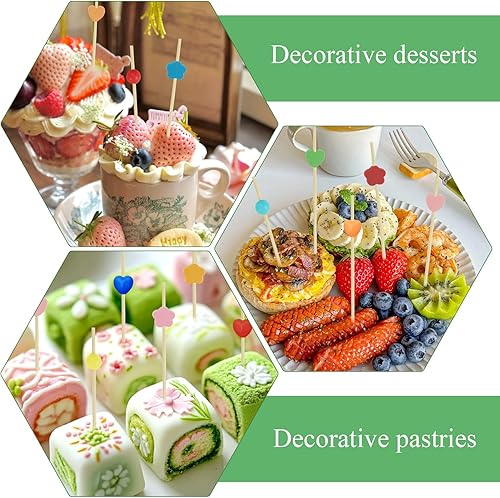 Xmart Lot de 200 brochettes à cocktail en bois de 12 cm - 4 formes - Convient pour les desserts, collations aux fruits, fêtes, bars, anniversaires, restaurants, brochettes (multicolore)