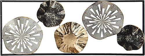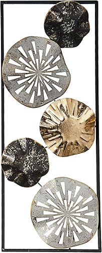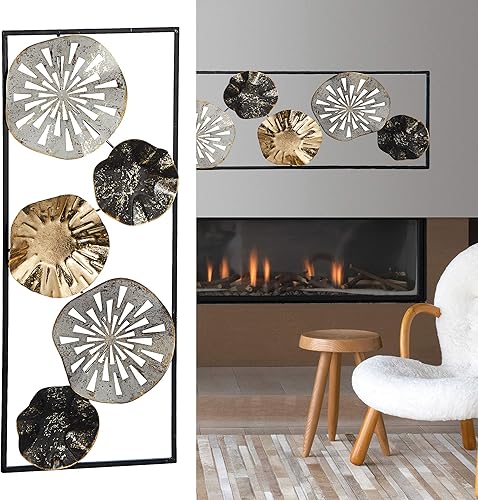 Cepewa Décoration murale en métal Anneaux Cercles Fleur Sculpture Décoration murale pour salons, salles à manger ou couloirs
