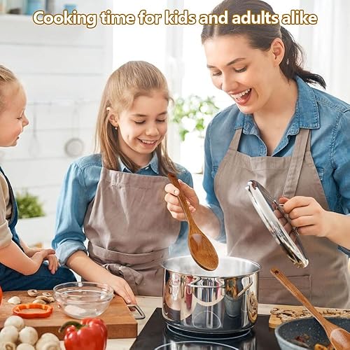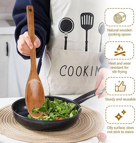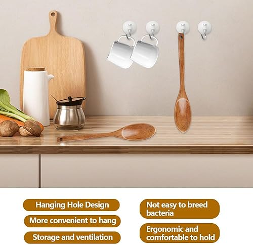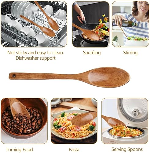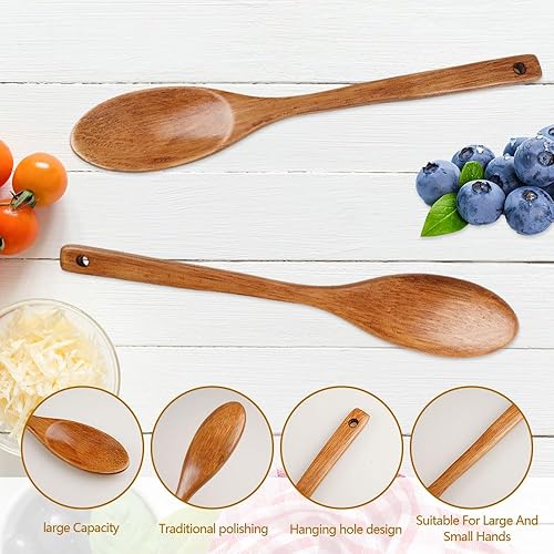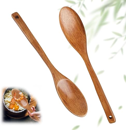 Lot de 2 Ustensiles de Cuisine Bois Anti-rayures, 33CM Cuillere en Bois Longue Manche pour Mélanger Cuisiner, Grandes Cuillères bois de Service Antiadhésives, Naturel et Durable, pour Remuer et Servir