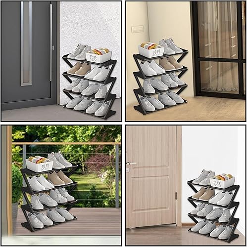 Wusideday Petite étagère à Chaussures en Forme de Z, étagère de Rangement montée à Plusieurs Niveaux, Peu encombrante, étagère de Rangement multifonctionnelle