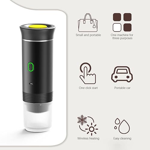 Cafetière sans fil portable 3 en 1 pour camping et voyage, batterie rechargeable de 2500 mAh, machine à café compacte pour capsules/poudre, maison, bureau, extérieur (noir)